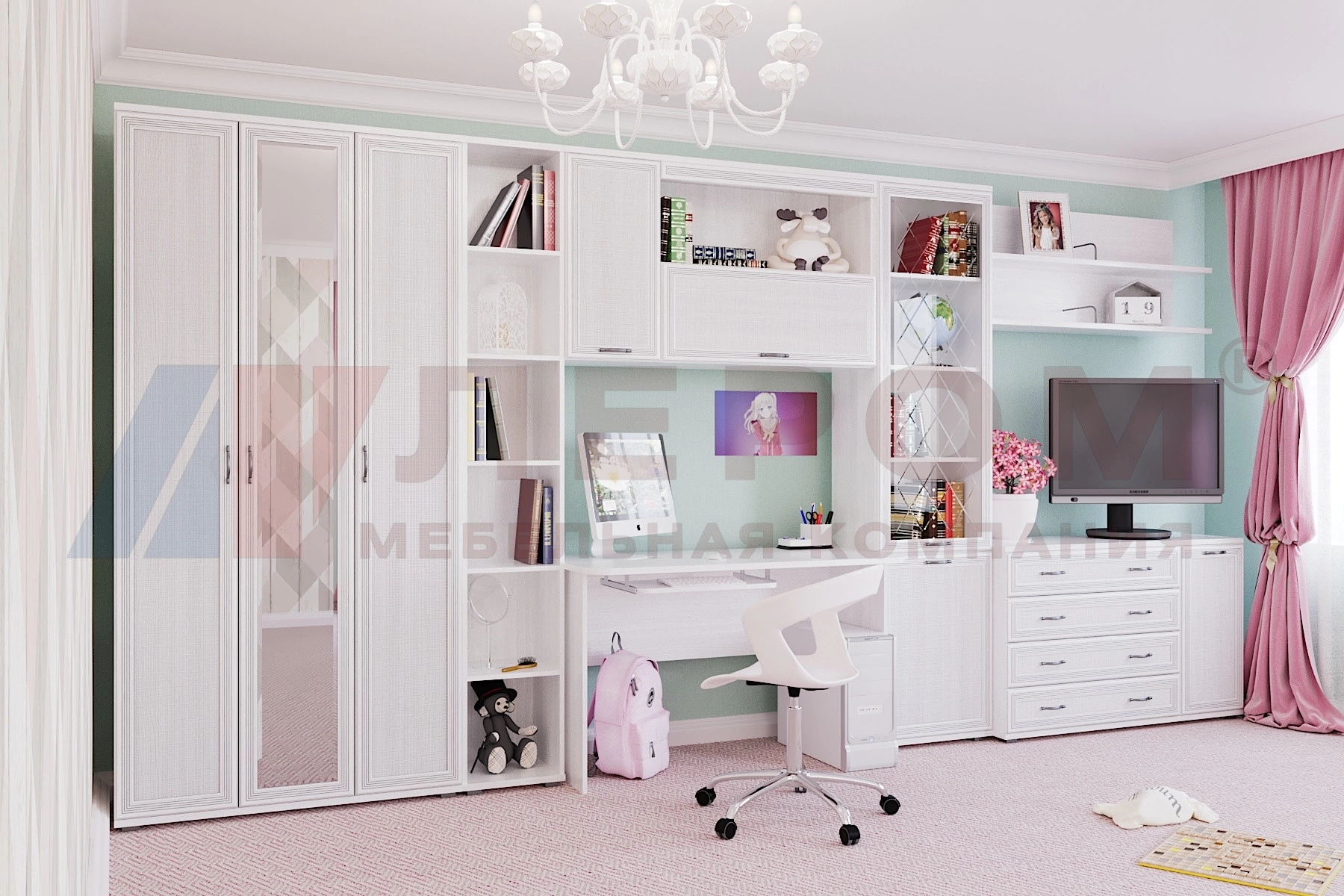 Применяемые материалы: корпус ЛДСП, фасад МДФ, стекло, зеркало.